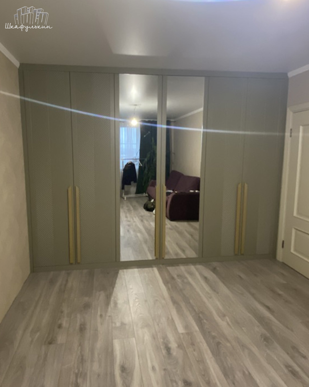 Фасады: МДФ 19 мм/NCS S 4010 G90Y, зеркало.