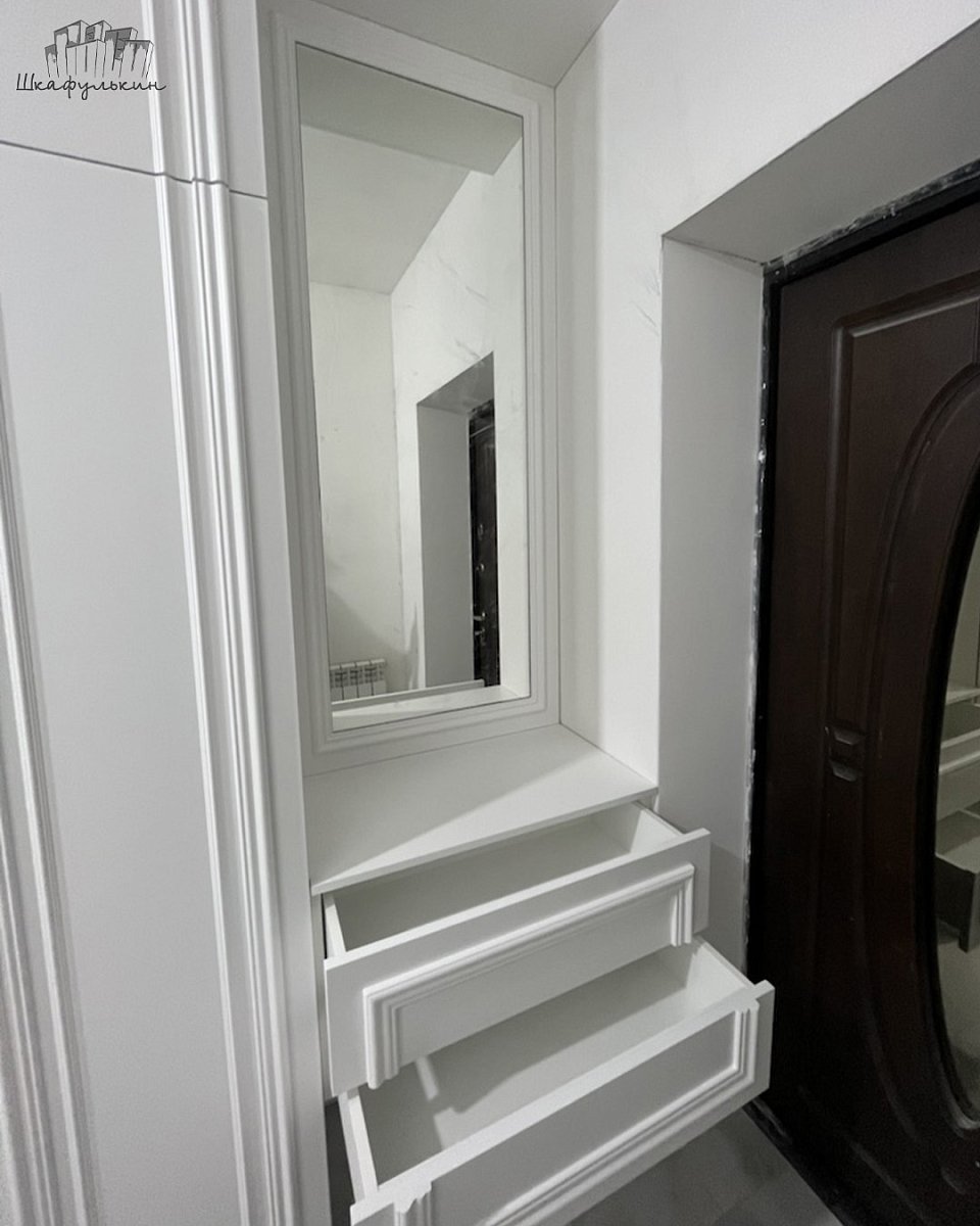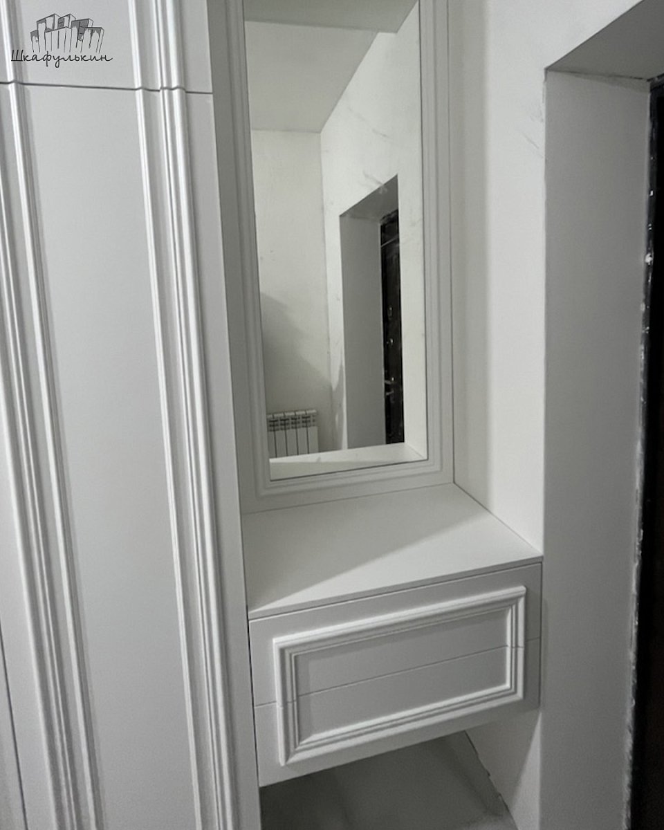 Фасады: МДФ 19 мм/RAL 9003, молдинг.