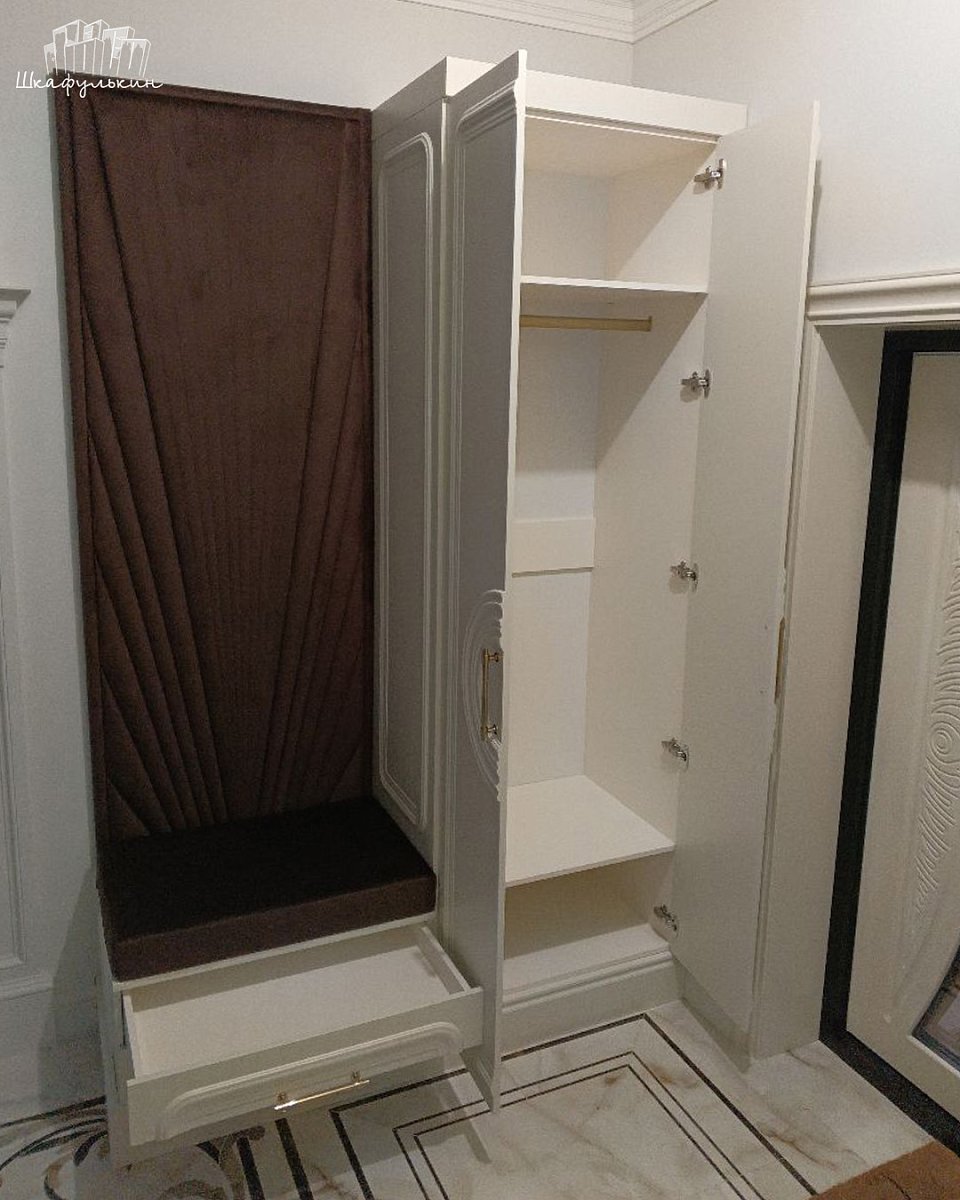 Фасады: МДФ 19 мм/RAL 1013, двухсторонняя покраска, молдинг.