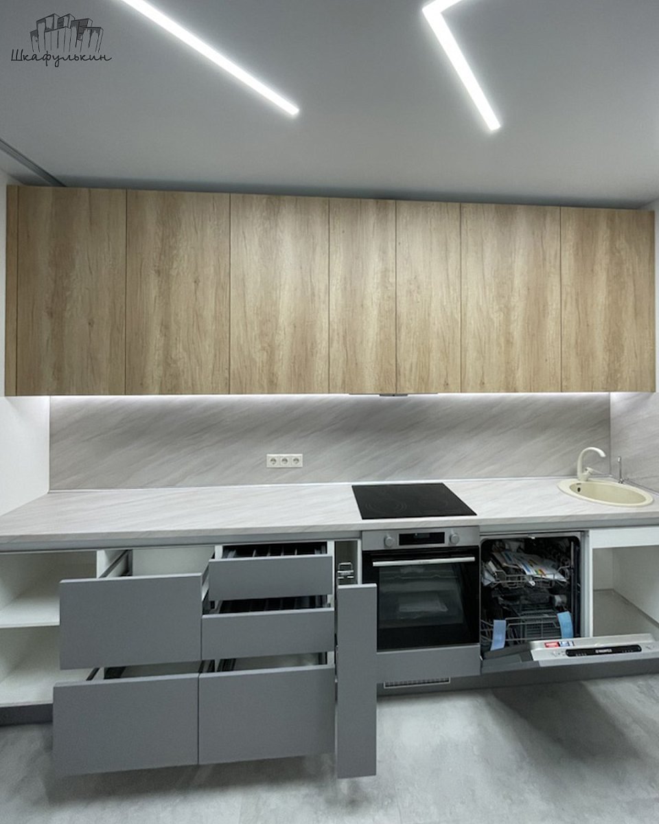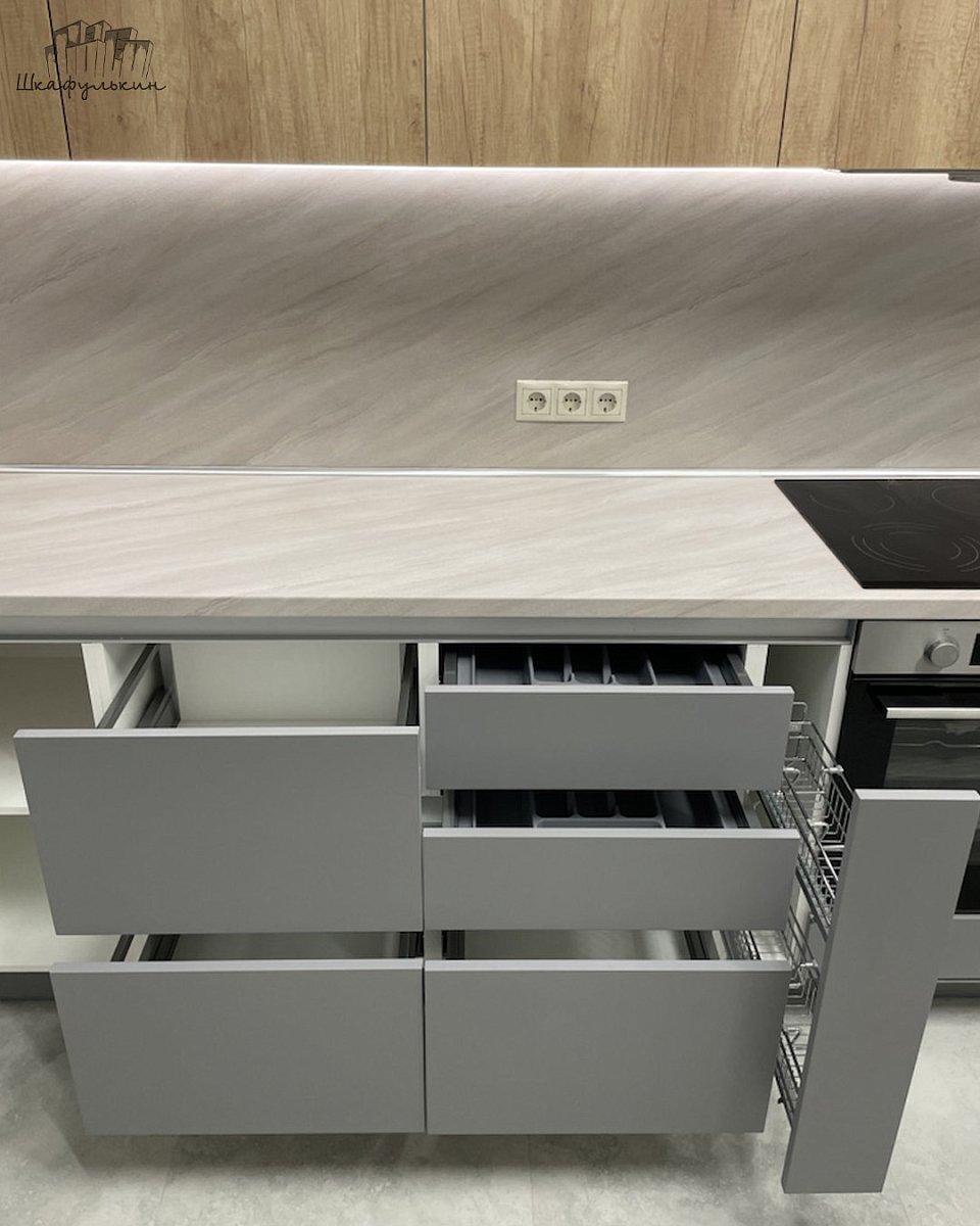 Фальшпанель и цоколь: ЛДСП Egger 16 мм/МДФ 16/19 мм/NCS S 4500-N.