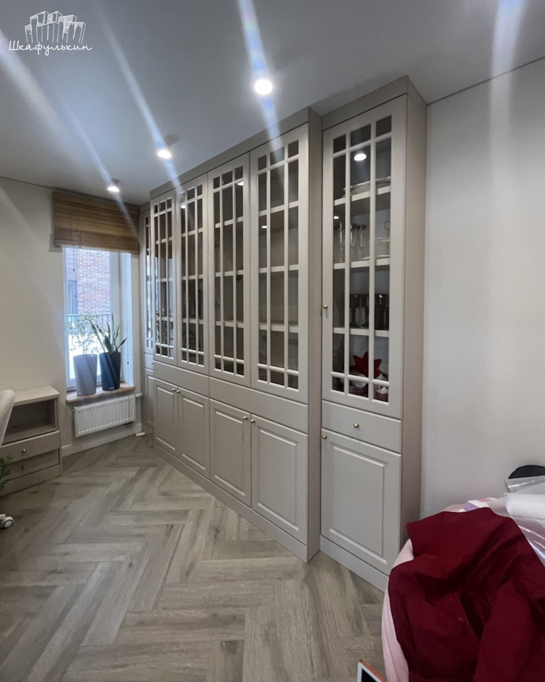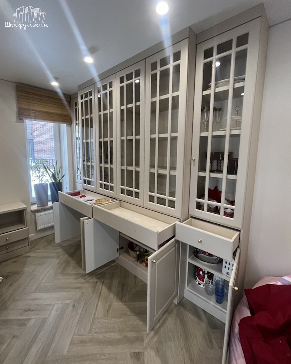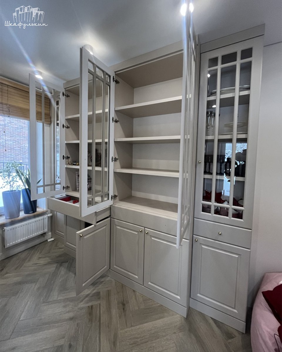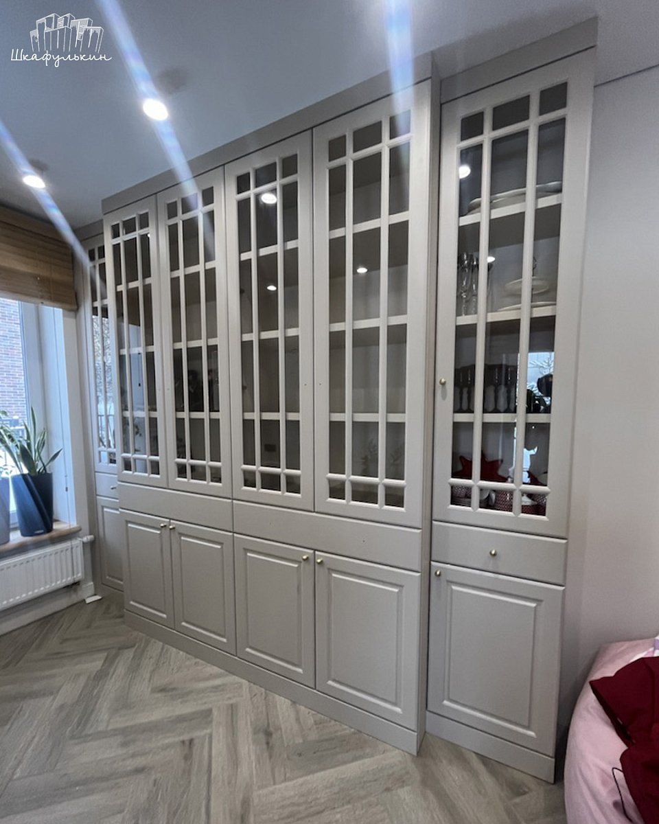 Фасады: МДФ 19 мм/NCS S 2005 Y40R, витрина.