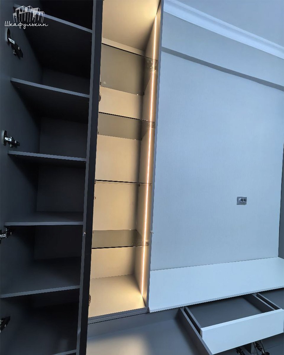 Подсветка: профиль серебро, свет тёплый.