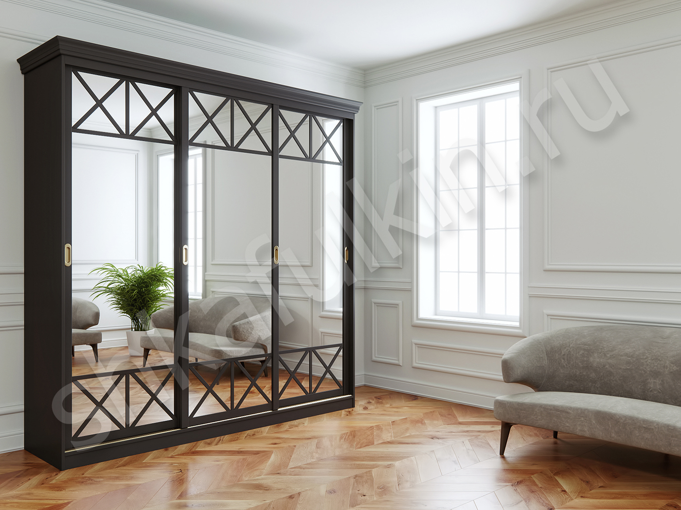 Шкаф-купе "Оскар" сочетает в себе фасады, текстурированные под дерево, и приглушенное мерцание зеркал с врезными ручками. Строгий классический дизайн в сочетании с изысканной простотой декоративной отделки создают гармоничный дуэт. Мебель может быть выполнена в любом цветовом решении. Светлая отделка помещения выполняет сразу несколько значимых функций – визуально расширяет пространство, способствует распространению солнечного света и служит идеальным фоном для размещения цветовых акцентов. На белом фоне эффектно смотрится практически любая меблировка, даже неяркие элементы декора и комнатные растения.