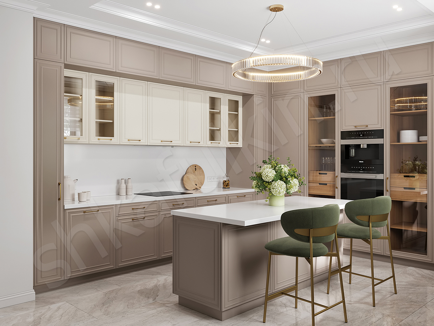 Фасады: МДФ крашенная по NCS, стекло.