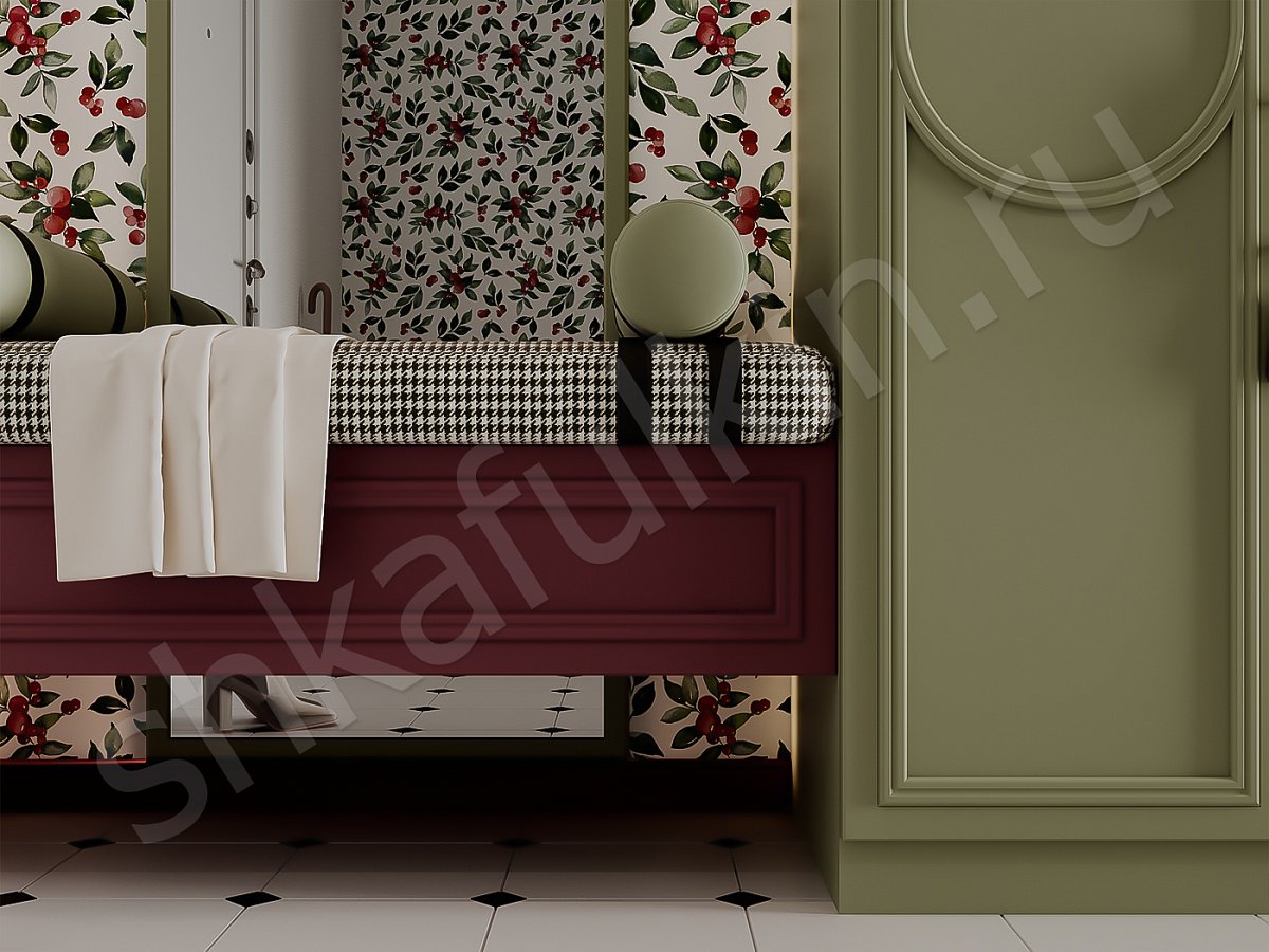 Навесной ящик с мягкой подушкой приглашает присесть на мгновение, чтобы перевести дух перед выходом в большой мир или, наоборот, с наслаждением погрузиться в атмосферу домашнего уюта.
