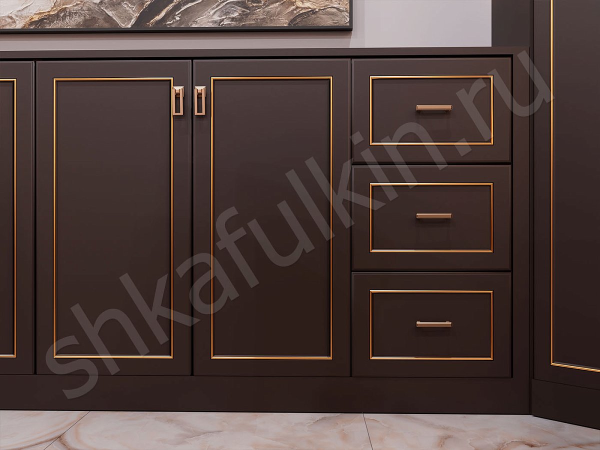 Фасады: МДФ с фрезеровкой, крашенная по NCS.