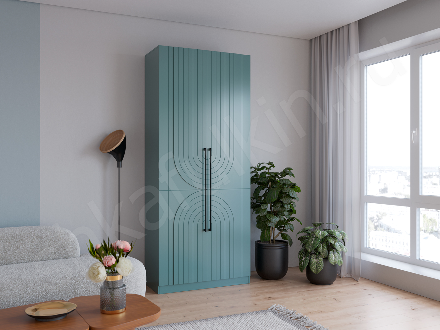 Фасады: МДФ с фрезеровкой, покрашенная по NCS.