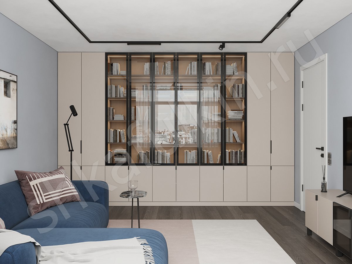 Фасады: МДФ крашенная по NCS; стекло в профиле ФБМ/ЛДСП Egger.