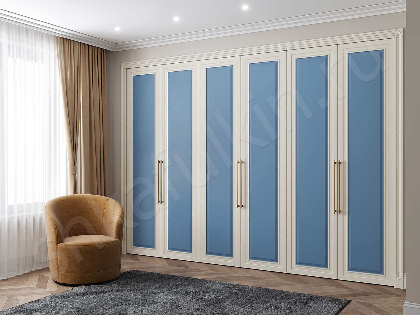 Фасады: МДФ с фрезеровкой, крашенная по NCS.
