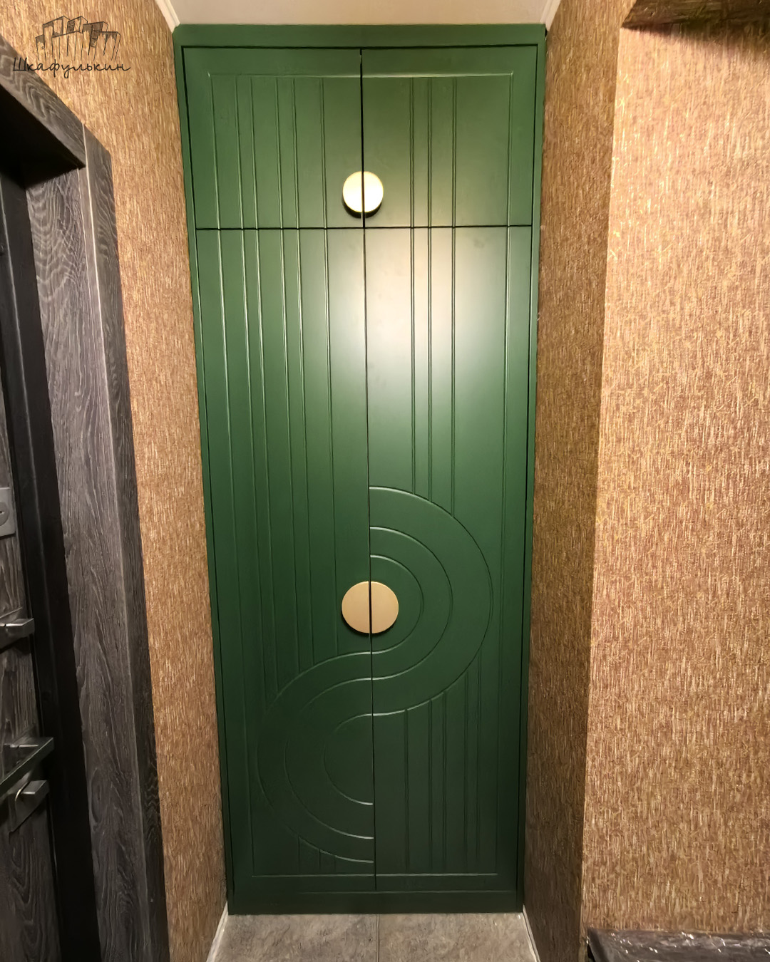 Шкаф в стиле неоклассика выполнен с фрезерованными фасадами и круглыми ручками, которые подчеркивают общую концепцию современных форм. Необычность этой модели не заканчивается, комбинация открытых и закрытых секций создают гармоничный дуэт, который не перегружает пространство и позволит расположить много интересного декора своих хозяев. Подсветка стеллажной секции с теплым свечением создают особую и очень уютную атмосферу в доме. Фасады можно изготовить в любой другом цвете палитр RAL или NCS.